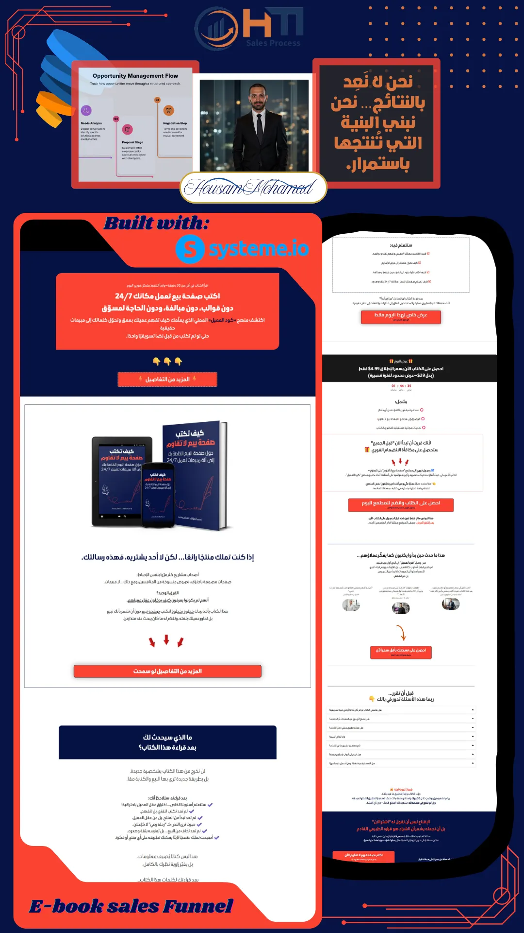 أنا حسام محمد، مؤسس HM Sales Process. بدأت رحلتي في عالم المبيعات الرقمية بعد أكثر من عشر سنوات من الخبرة في الهندسة وإدارة المشاريع، وهناك اكتشفت أن أغلب من يفشلون في البيع… لا يفشلونلأن منتجاتهم سيئة، بل لأن أنظمتهم غير مبنية بطريقة هندسية يمكن قياسها وتطويرها.